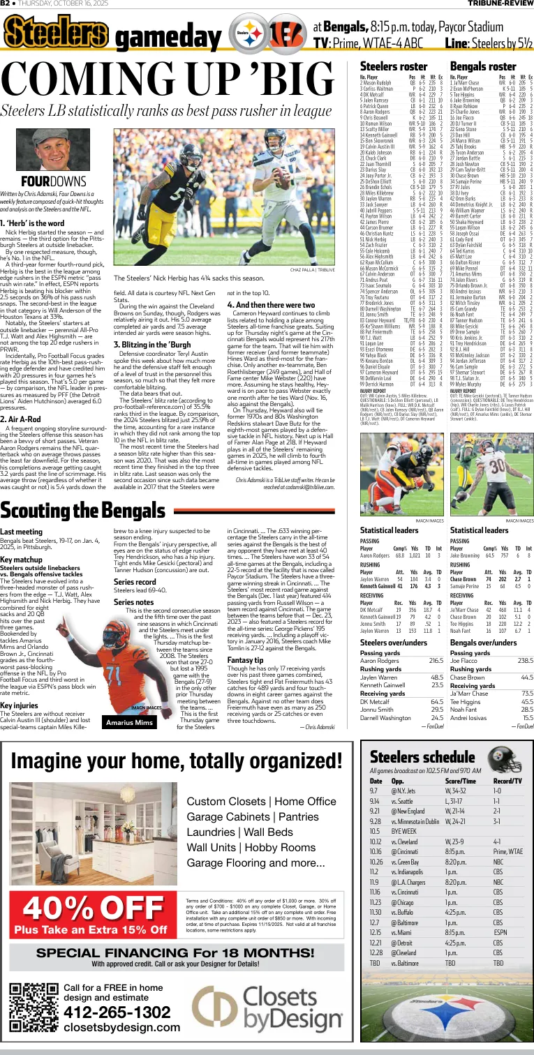 If you can’t get a copy of Thursday’s Tribune-Review, check out our Steelers Gameday page.