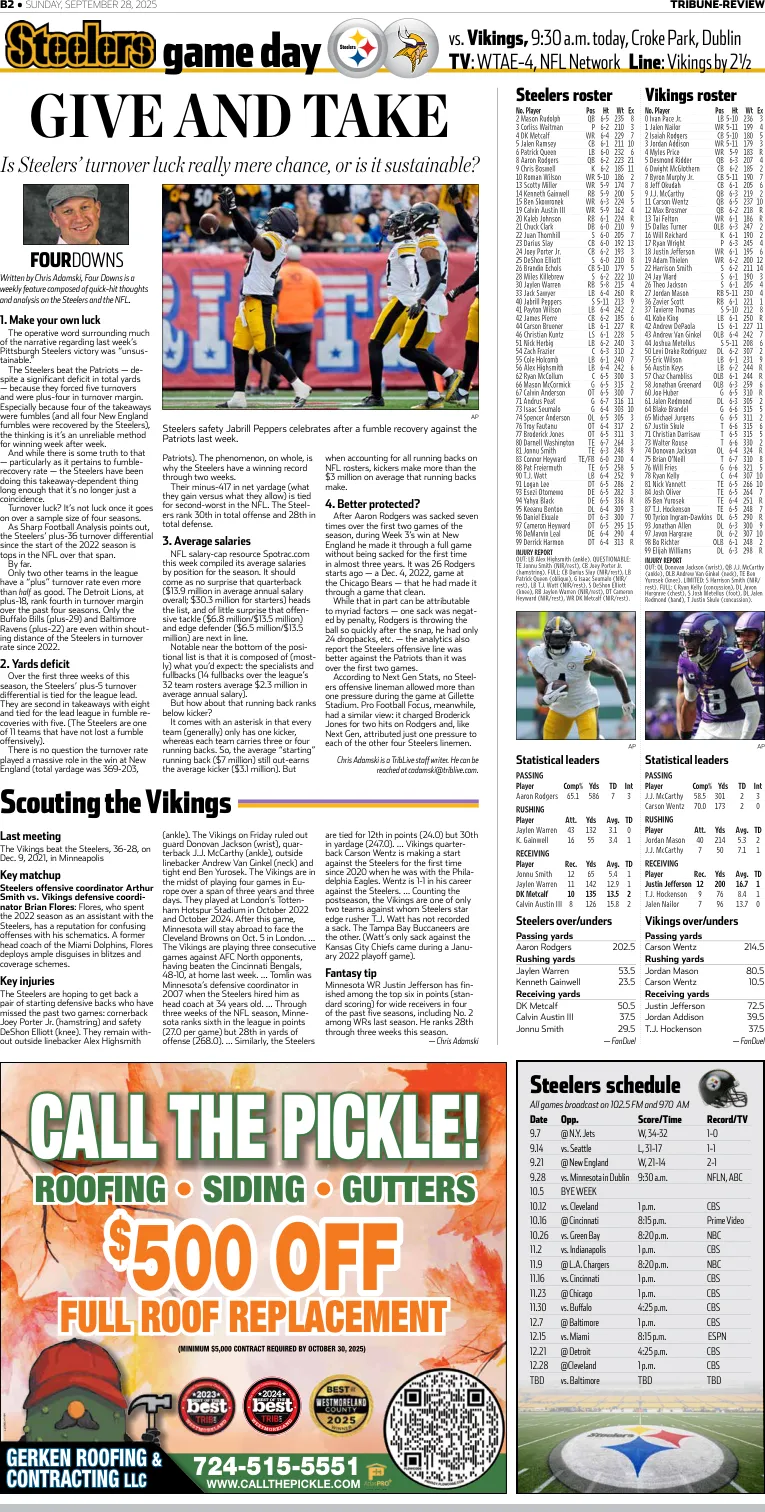 • Football Footnotes: Steelers’ D vs. Vikings may be the cure for your Irish FOMO