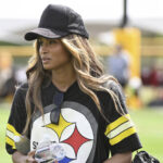 Pop star Ciara was seen this week at Steelers training camp, decked out in the team’s gear and watching her husband, quarterback Russell Wilson.