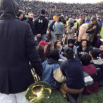NEW HAVEN, Conn. — Protesters wearing the colors of both Harvard and Yale staged a sit-in Saturday at midfield of Yale Bowl during halftime of the 136th edition of the annual football rivalry known as The Game. Most walked off after about an hour with a police escort.