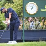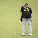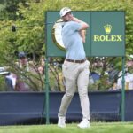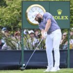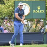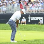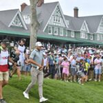 Sam Burns takes the walk after teeing off on the 18th during the final round of the U.S. Open on Sunday at Oakmont Country Club.