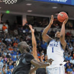 Trailing 34-32 in the final four minutes of the opening half, Williamson hit a short jumper, and then collected Jordan Goldwire’s miss for a three-point play. Duke led 44-36 at the break.